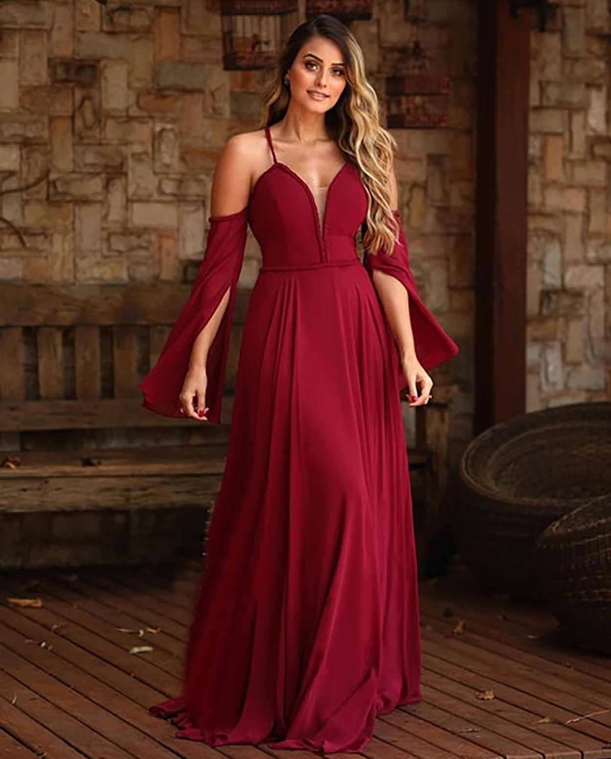 Essa opção é apenas mais uma preferência e é super elegante! Mas pode ser uma opção um pouco mais complicada dependendo do material. Por isso, algumas noivas presenteiam as madrinhas com os cortes de tecido. Assim, elas escolhem o seu modelo favorito.