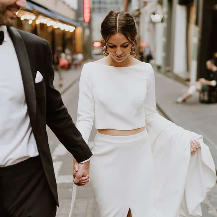 Uma coisa leva à outra que leva à outra e assim chegamos nos duas-peças (de top e calça, shorts ou saia). Assim mesmo, despretensiosamente, os duas-peças coordenadas chegaram como mais uma opção para as noivas brilharem no grande dia, e o blazer é a novidade do ano.