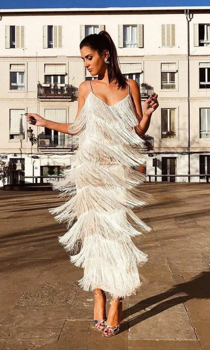 Franjas continuam com tudo! Em grande quantidade, em camadas ou misturadas, mas agora com inspiração direta das melindrosas (flappers) dos anos 20. Afinal, estamos entrando nos loucos anos 20 novamente!