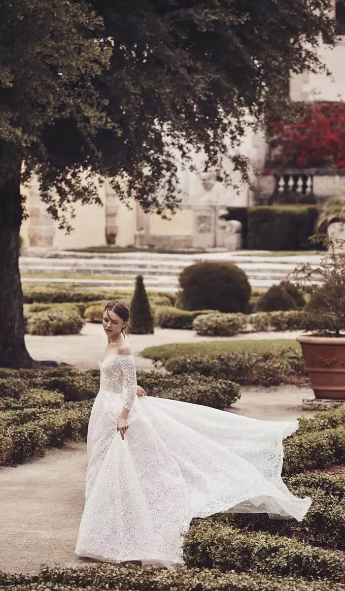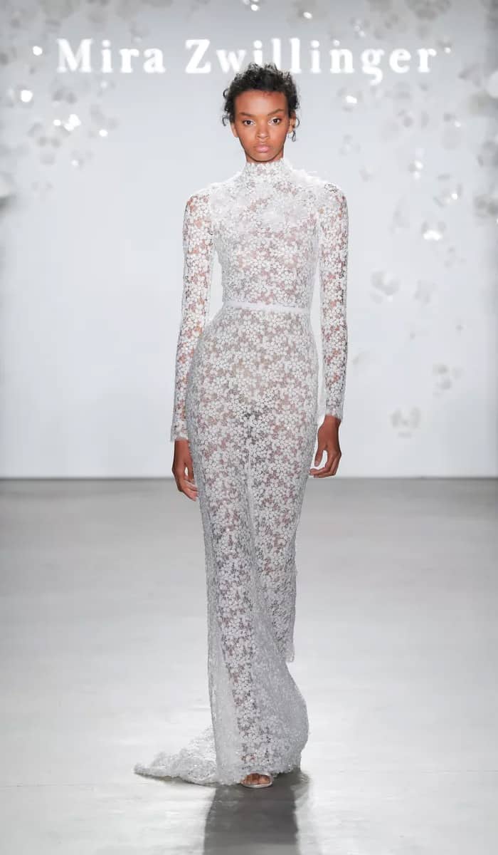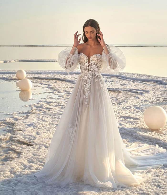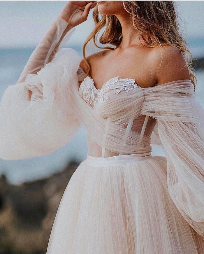 2020 vai ser um ano de muita delicadeza, feminilidade e fluidez. Saias e mangas esvoaçantes mais leves do que o ar, transparências,rendas leves,tule e organza emitem uma vibe etérea romântica e sem nenhum volume adicional, para que a noiva possa chegar à pista de dança, quando chegar a hora,sem se estressar em tropeçar em seu vestido ou se sentir pesada por causa de tanto pano.