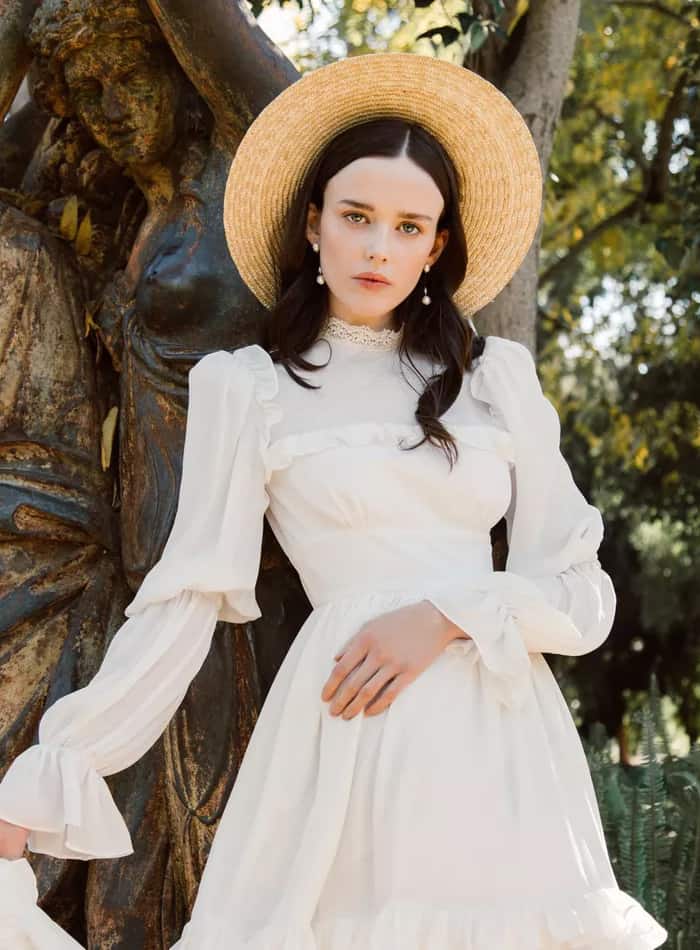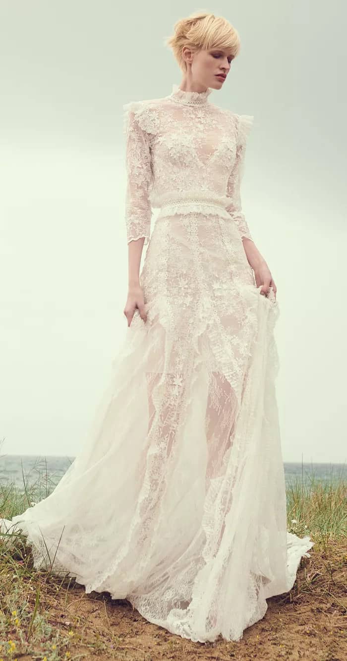 As golas altas de época ganham uma versão moderna deste visual com babados, mangas longas transparentes, camadas e rendas inspiradas na época, além de saias fluidas que dão uma visão contemporânea da jovialidade do boho.