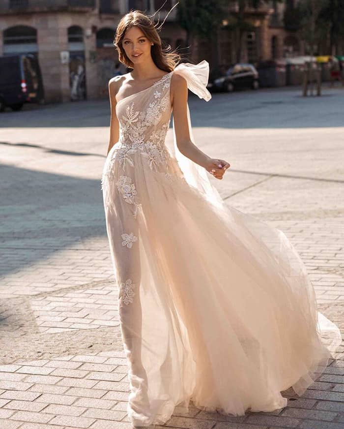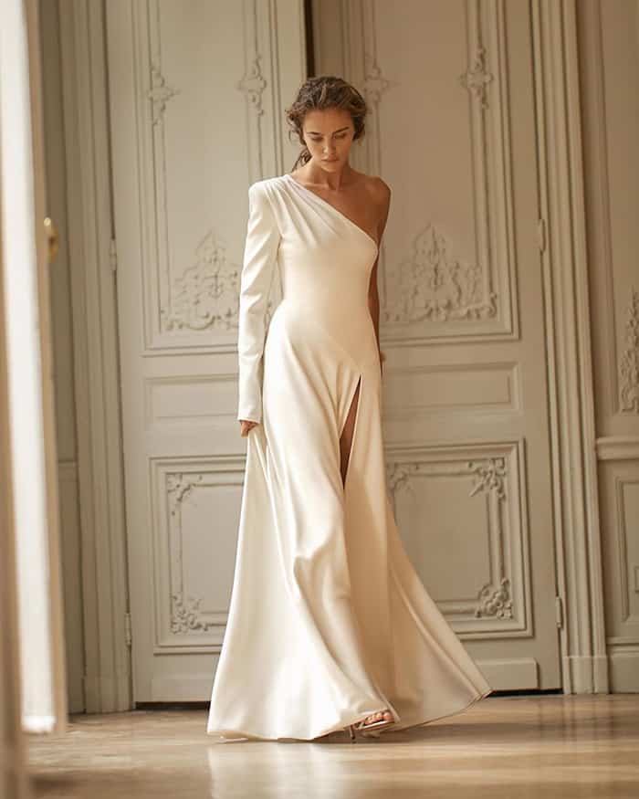 Esta silhueta única lisonjeia a parte superior do corpo e dá aquele ar de deusa grega. A melhor parte dessa tendência de vestido de noiva para 2020 é que ela funciona para praticamente todos os estilos de casamento. Você sabia que a Lorena casou com um vestido de um ombro só?