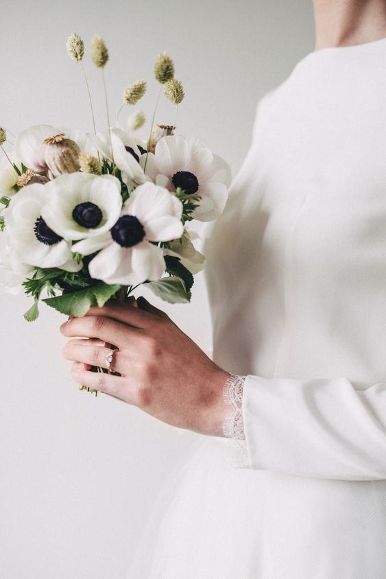 Embora os grandes e exuberantes buquês de noiva tenham dominado a cena do casamento por anos, em 2021 os buquês pequenos vão ficar mais populares. Eles são bonitos e delicados, e seu tamanho menor permite que o foco fique no vestido de noiva ou nos acessórios complementares.