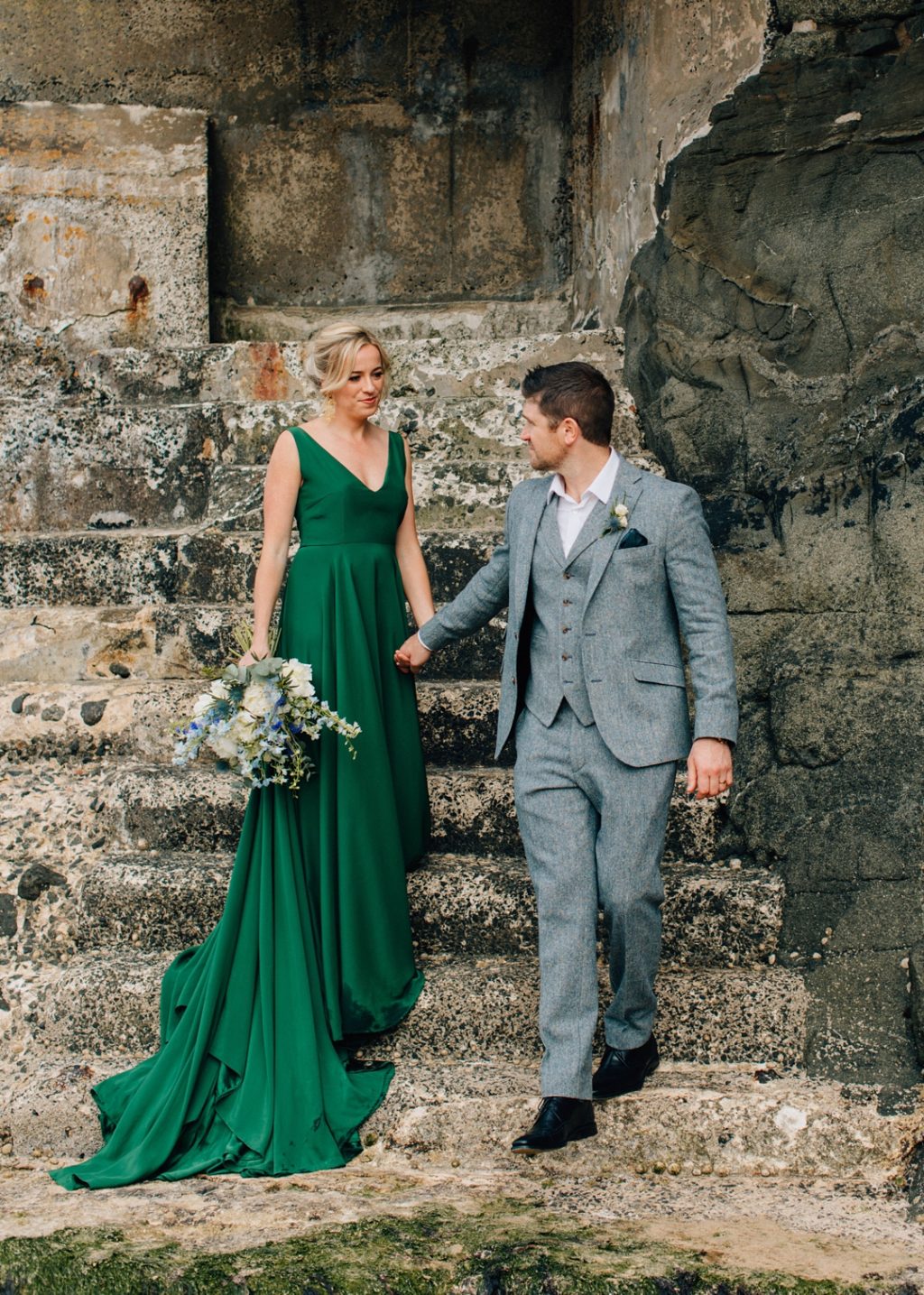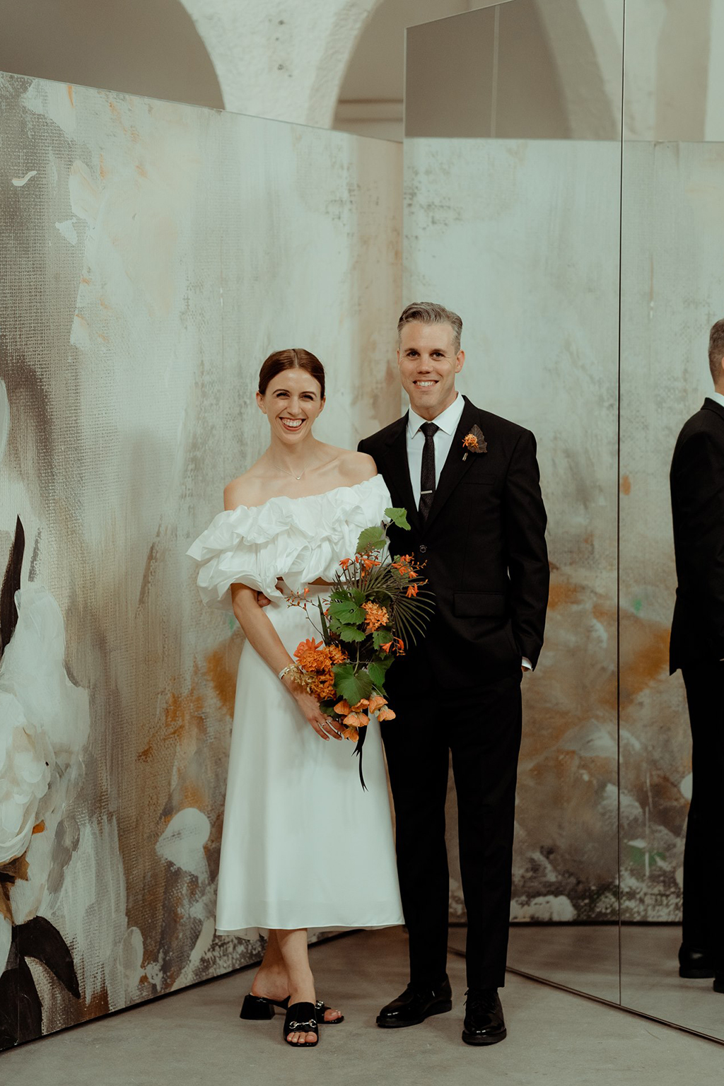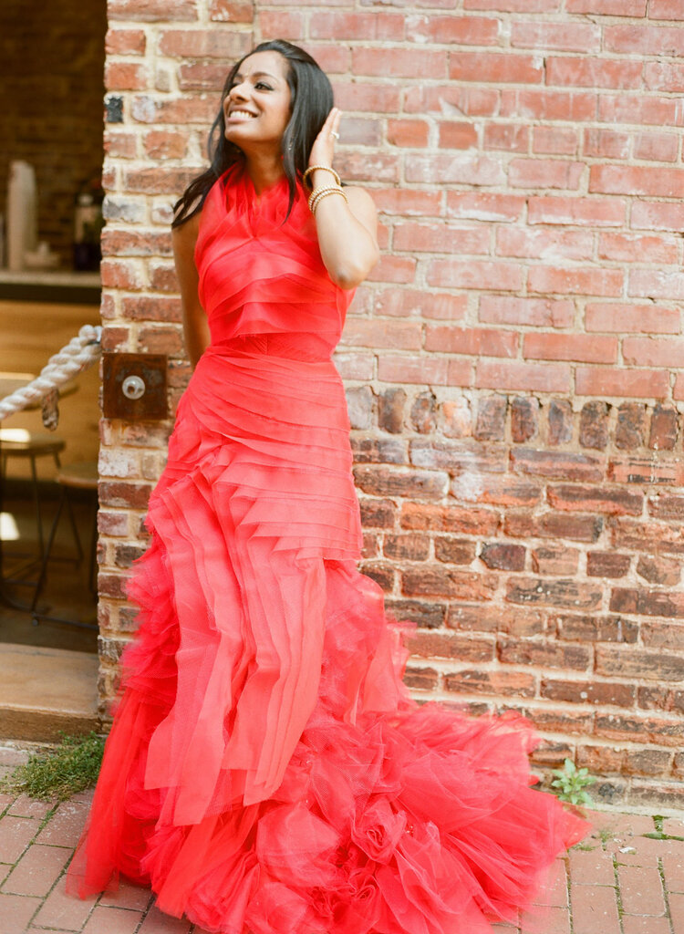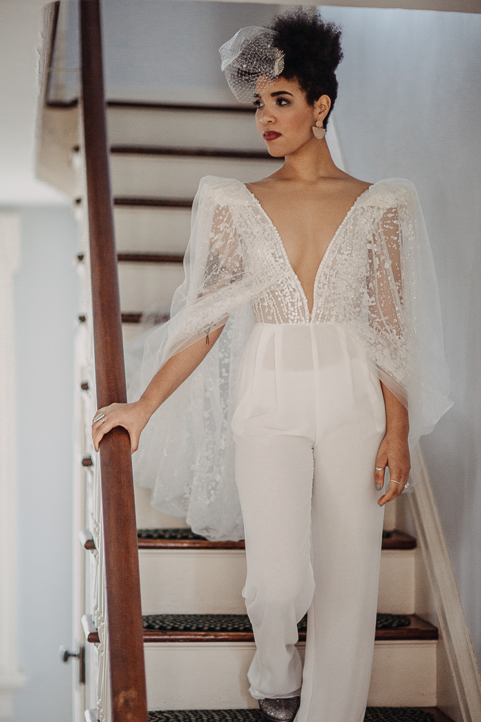 Outra tendência que estamos vendo são os vestidos que se transformam e são usados em mais de uma ocasião: vestidos que são dois looks em um, uma mudança depois da cerimônia para um minivestido ou macacão para a recepção e, para noivas e noivos, tênis. Os casais querem estar confortáveis e, para muitos, isso significa um traje mais casual.