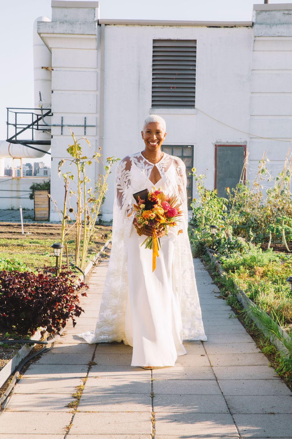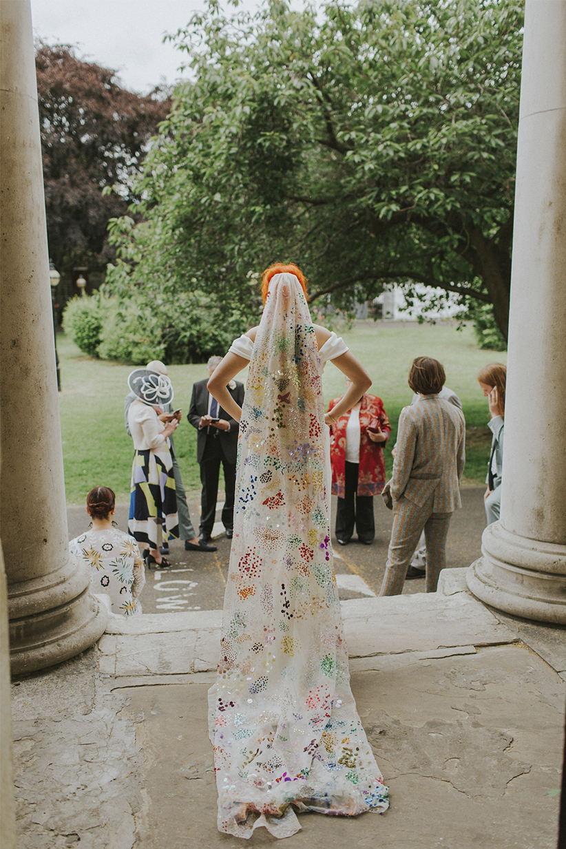 As capas estão na roda faz um tempinho. Elas oferecem os mesmos benefícios de um véu tradicional: ponto de foco, cobertura extra e uma cauda opcional. As capas são uma maneira fácil de adicionar um toque moderno ao vestido de noiva, mesmo que ele seja curto.