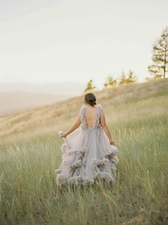 Camadas de duas, três ou quatro peças que podem ser usadas de diferentes maneiras. Os looks de várias peças, especialmente se você puder vestir novamente a blusa ou a saia separadamente, é o que vai chamar a atenção das noivas ecologicamente corretas e sustentáveis.