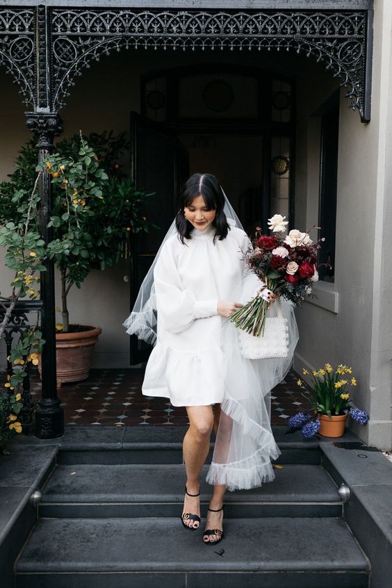 Se você decidiu usar um modelo de vestido de noiva curto, é preciso equilibrar as proporções do resto do look com acessórios. Não é complicado harmonizar vestidos curtos, é só ter atenção para que o conjunto fique em sintonia.