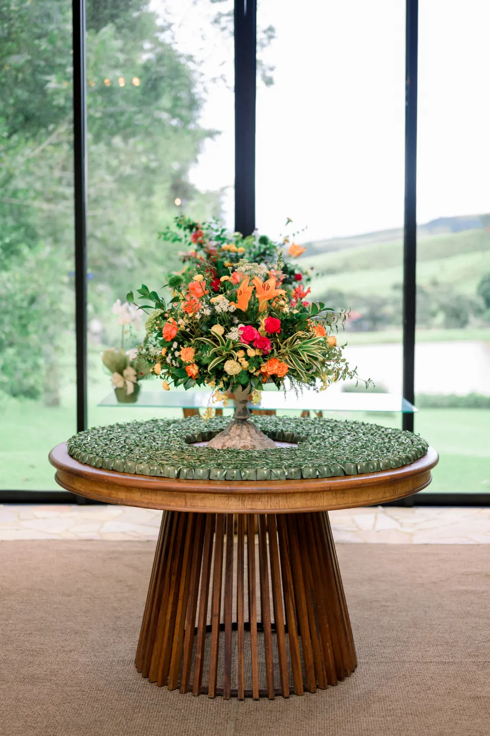 A cerimônia, montada sob uma estrutura transparente em meio à vegetação exuberante, criou uma atmosfera íntima, mas com um toque de requinte. Escolher um vestido assim, minimalista, intensifica ainda mais essa harmonia.
