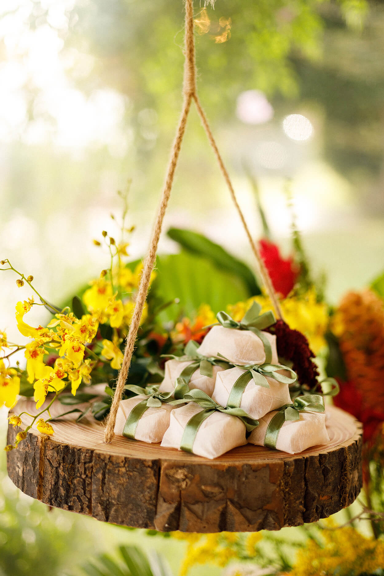“Tudo começou pela escolha do Rancho e daí, cada detalhe foi bem planejado com a assessora aproveitando cada cantinho. Desde a decor para cerimônia em no gramado e capelinha até um lounge próximo de uma árvore no meio do salão de festas”.